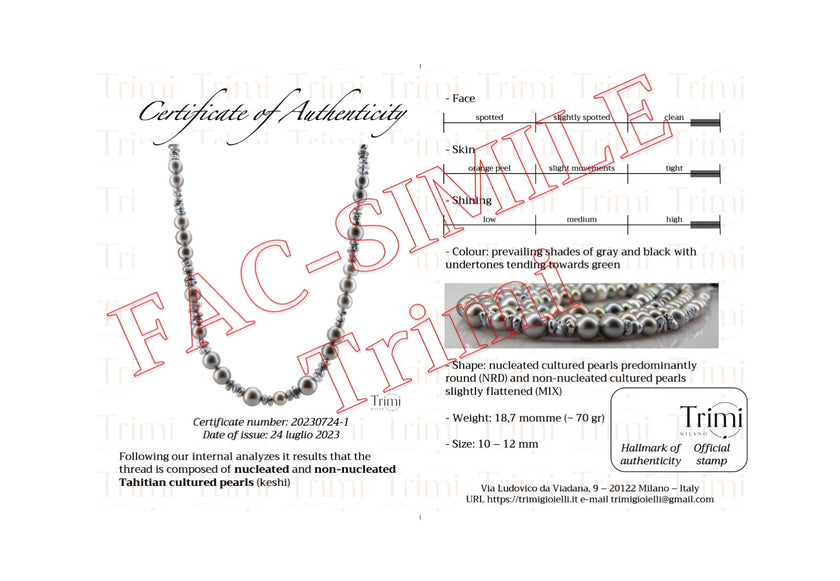 Certificat réalisé selon les meilleures pratiques du marché utilisées dans les plus importantes ventes aux enchères internationales de perles